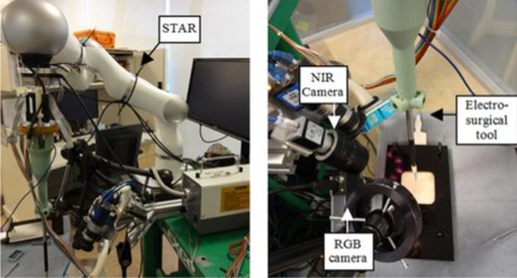 这个机器人名叫智能软组织自主机器人(Smart Tissue Autonomous Robot,STAR),由 Azad Shademan 带领团队研发。在美国举行的智能机器人与系统国际学术会议(IROS 2017)上,STAR 的发明者们展示了最近的实验成果:相比起专业的外科医生,机器人也能够更精确地切开组织,对周围的组织损伤也更小。